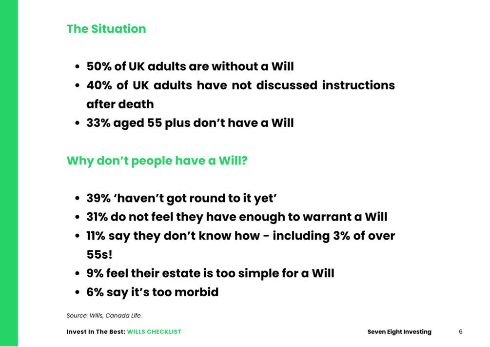 💡The Reason: 39% haven’t got round to it yet, 31% do not feel they have enough to warrant a Will, 11% say they don’t know how.